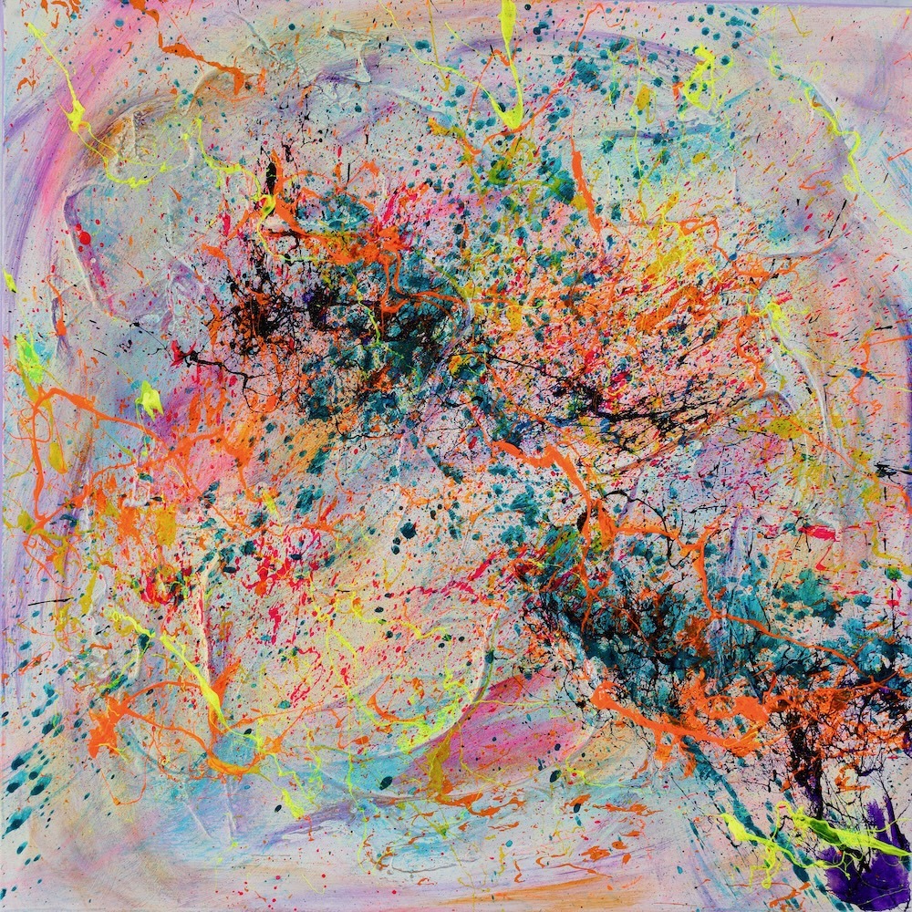 Garder le cap – Œuvre d’art abstrait originale sur toile sur un fond réalisé au chiffon puis aux lancés de peinture dynamique et vivant. Dans un contexte où la sensation de perdre le contrôle est facile à ressentir, cette toile est une invitation à garder le cap vers l’Espoir et la Douceur.